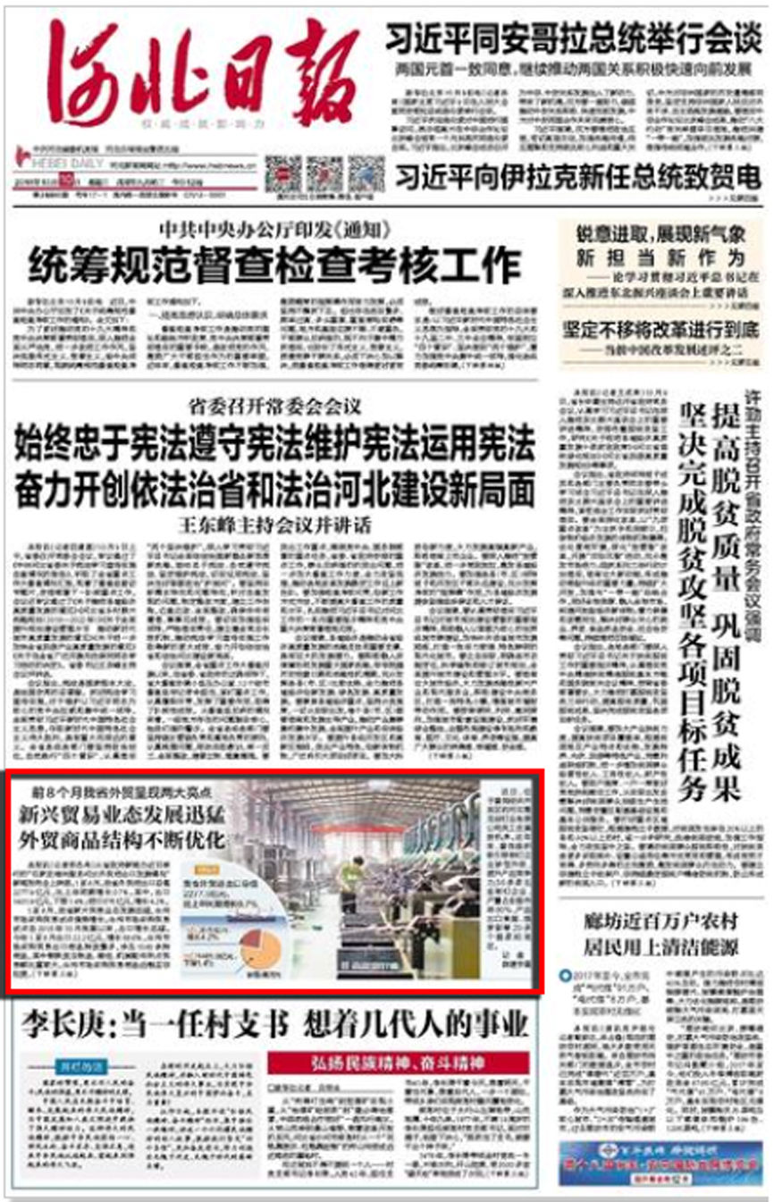 青龍劍釘業(yè)在2018年10月10日《河北日?qǐng)?bào)》頭版被刊登,這是在《河北經(jīng)濟(jì)日?qǐng)?bào)》被刊登后的又一次登上省日?qǐng)?bào)。