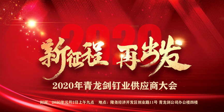 2020年1月2日上午9點,青龍劍釘業(yè)2020年度供應(yīng)商大會在青龍劍經(jīng)濟開發(fā)區(qū)公司盛大召開,本次大會以“新征程,再出發(fā)”為主題,青龍劍董事長馬志華、總經(jīng)理馬群澤及各部門負責人與隆堯經(jīng)濟開發(fā)區(qū)領(lǐng)導、公司原輔料供應(yīng)商共計160余位嘉賓共同出席了此次盛會。