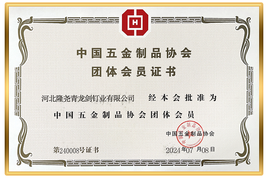 熱烈祝賀青龍劍公司成為中國(guó)五金制品協(xié)會(huì)團(tuán)體會(huì)員,經(jīng)過中國(guó)五金協(xié)會(huì)嚴(yán)苛審核,青龍劍公司于2024年7月8日榮獲中國(guó)五金制品協(xié)會(huì)頒發(fā)的團(tuán)體會(huì)員證書。青龍劍公司作為行業(yè)領(lǐng)軍企業(yè),以此為契機(jī),以強(qiáng)烈的責(zé)任心,高度的使命感,引領(lǐng)行業(yè)穩(wěn)步前行,努力創(chuàng)建國(guó)際先進(jìn)智能制造全產(chǎn)業(yè)鏈工廠。-