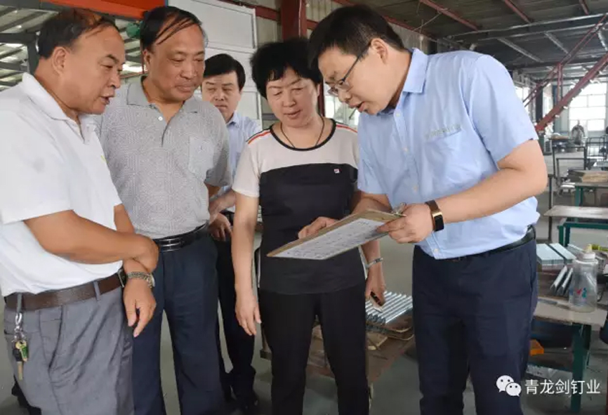7月25日上午,隆堯縣工經聯(lián)領導焦景芬、王占堂、胡濟南、張智一行蒞臨隆堯魏莊五金制品協(xié)會企業(yè)。為調研協(xié)會企業(yè)情況、指導協(xié)會工作蒞臨來訪。魏家莊鎮(zhèn)書記王秀峰、鎮(zhèn)長成英峰、協(xié)會會長張志山及協(xié)會工作人員陪同參與。青龍劍釘業(yè)總經理、協(xié)會副秘書長馬群澤陪同參觀講解。
