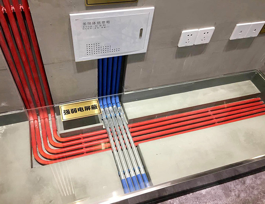 在標(biāo)準(zhǔn)裝修施工時,強(qiáng)弱線路必須采用PVC管進(jìn)行套管保護(hù),并通過不同顏色的PVC管進(jìn)行區(qū)分,通常紅色PVC管為強(qiáng)電,藍(lán)色PVC管為弱電。